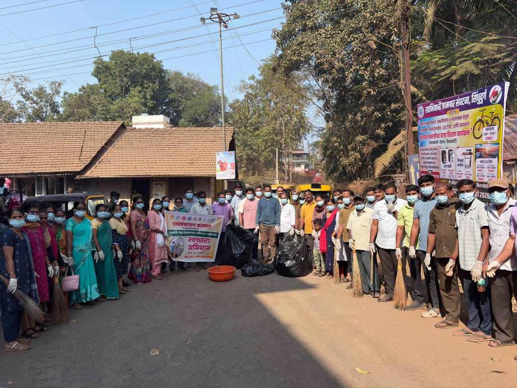 कणकवली : मुख्यमंत्री पंचायत राज अभियानाच्या माध्यमातून राबविण्यात येणाऱ्या समृद्ध पंचायतराज महोत्सव या उपक्रमांतर्गत कलमठ गावात विविध स्वच्छता व प्रबोधनात्मक कार्यक्रमांना उत्साहात सुरुवात झाली. या उपक्रमाचा प्रारंभ कणकवली–आचरा मार्गावरील लक्ष्मी चित्रमंदिर ते कलमठ बाजारपेठ या दरम्यान स्वच्छता अभियान राबवून करण्यात आला. या मोहिमेत ग्रामस्थांनी मोठ्या संख्येने उत्स्फूर्त सहभाग घेत स्वच्छता मोहीम यशस्वी केली.