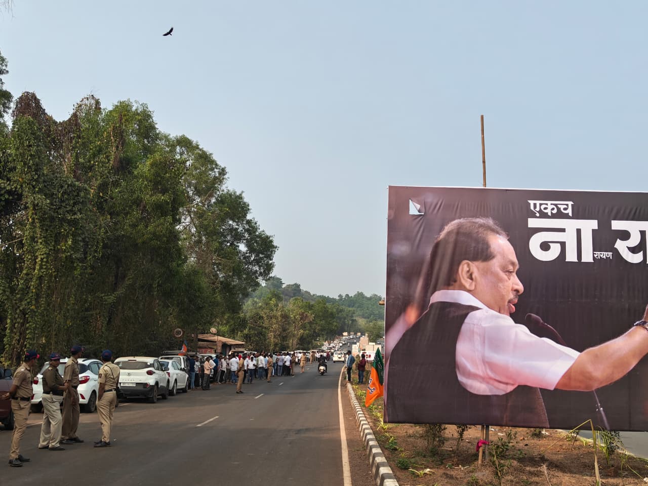 *पत्रा देवी ते बांदा अशा लांबच लांब गाड्यांच्या लागल्या रांगा:कार्यकर्त्यांमध्ये अपूर्व उत्साह, काही वेळातच खासदार राणेंचे होणार भव्य स्वागत.