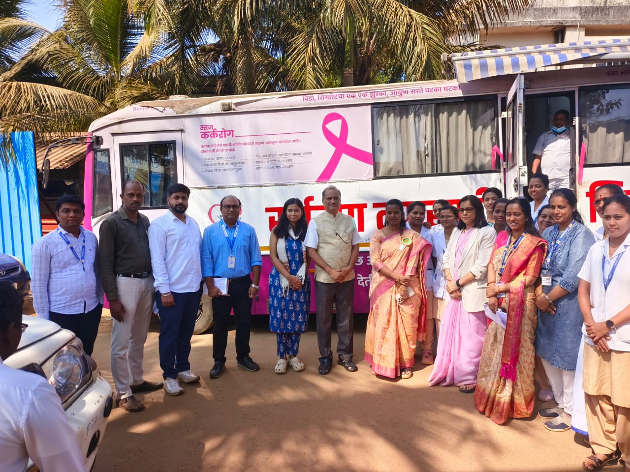 ⚡ओरोस ता ७-: कर्करोगाच्या निदानासाठी सिंधुदुर्ग जिल्ह्यामध्ये कॅन्सर व्हॅन दाखल झालेली आहे. या अंतर्गत बुधवारी सिंधुदुर्गनगरी येथील जिल्हा रुग्णालयात कर्करोग तपासणी शिबीराचे आयोजन करण्यात आले होते. जिल्हाधिकारी तृप्ती धोडमिसे यांच्या हस्ते फीत कापून या शिबीराचे उद्घाटन करण्यात आले. यावेळी मुख्य कार्यकारी अधिकारी रविंद्र खेबुडकर, प्रभारी जिल्हा शल्यचिकित्सक डॉ. अर्जुन नरोटे, जिल्हा आरोग्य अधिकारी डॉ. सई धुरी, जिल्हा कार्यक्रम व्यवस्थापक डॉ. रोहन साळुंखे तसेच जिल्हा आयुष अधिकारी डॉ. कृपा गावडे व सर्व आरोग्य कर्मचारी या ठिकाणी उपस्थित होते. यावेळी कर्करोग तपासणी अंतर्गत मुखाचा, स्तनाचा तसेच गर्भाशय मुखाच्या कर्करोगाकरीता रुग्णांची तपासणी करण्यात आली. या शिबीरामध्ये एकूण 94 रुग्णांची तपासणी करण्यात आली.