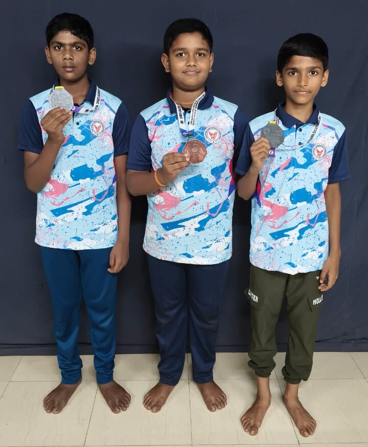 ऋण्मय शिरवलकर, शास्वत गाठे यांनी रौप्य पदक तर प्रद्युम्न मुळदेकर याला कांस्यपदक..
