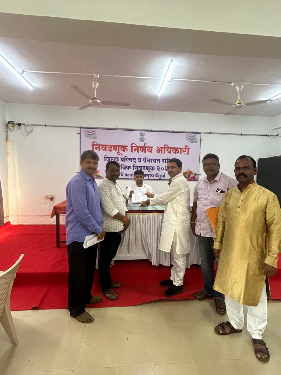 ⚡वेंगुर्ला ता.२०-: सिंधुदुर्ग जिल्हा बँक अध्यक्ष श्री. मनीष प्रकाश दळवी यांनी आज 20 जानेवारी रोजी दुपारी भारतीय जनता पार्टीतर्फे वेंगुर्ला तालुक्यातील आडेली जिल्हा परिषद मतदारसंघातून उमेदवारी अर्ज दाखल केला आहे. निवडणूक निर्णय अधिकारी तथा तहसीलदार ओंकार ओतारी यांच्याकडे हा अर्ज दाखल करण्यात आला आहे. यावेळी भाजपा वेंगुर्ला तालुकाध्यक्ष विष्णू उर्फ पप्पू परब, मच्छिमार नेते वसंत तांडेल, नगरसेवक प्रशांत आपटे, भाजपचे पदाधिकारी प्रशांत प्रभूखानोलकर आदी उपस्थित होते. आज मंगळवारी पाचव्या दिवशी एकूण 2 उमेदवारी अर्ज दाखल करण्यात आले आहेत. यामध्ये चंद्रहास उमेश पांडजी – रेडी जिल्हा परिषद मतदारसंघ यांनी अपक्ष म्हणून अर्ज दाखल केला आहे.तर आजपर्यँत एकूण 162 अर्ज विक्री झाली आहे, अशी माहिती तहसीलदार ओंकार ओतारी यांनी दिली.