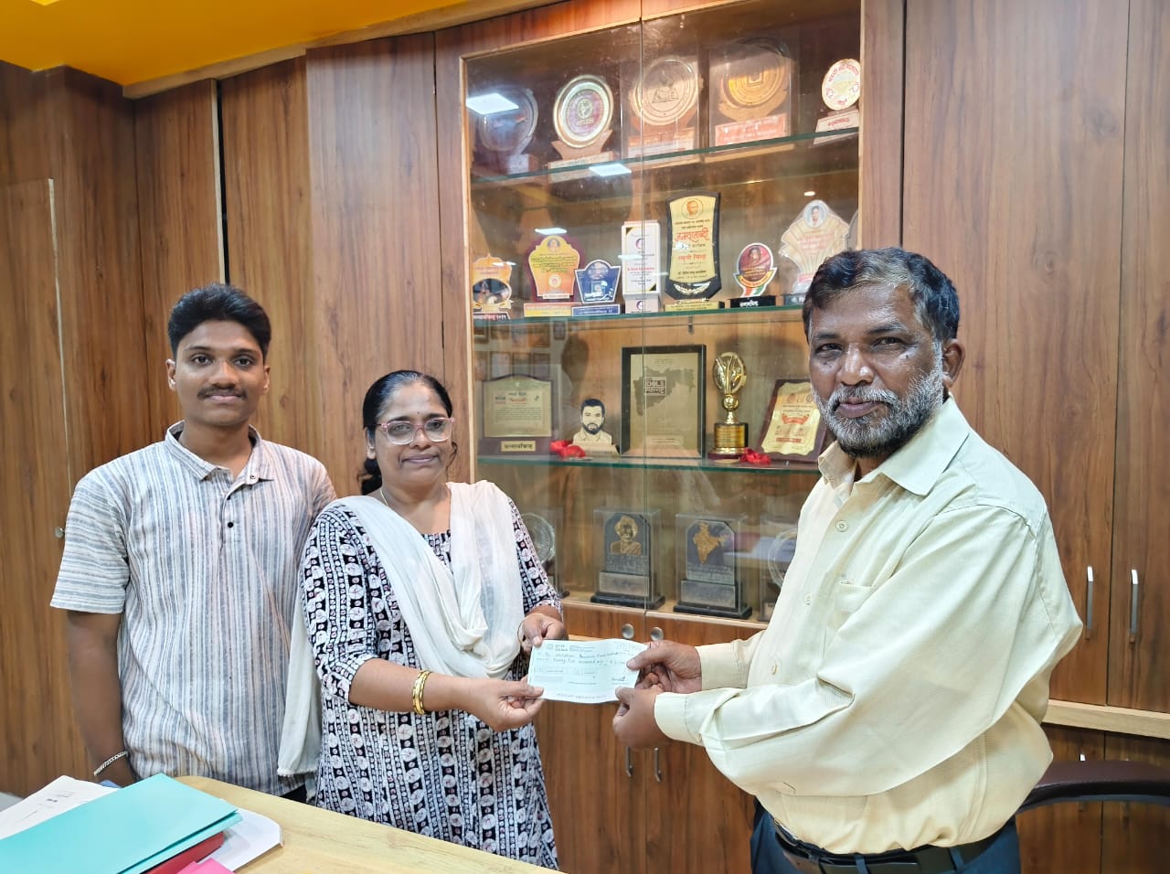 शिक्षण प्रसारक मंडळाचे उपाध्यक्ष डॉ. दिनेश नागवेकर यांच्याकडे हा धनादेश निरज भोसले व श्रीमती मानसी भोसले यांनी सुपूर्द केला.