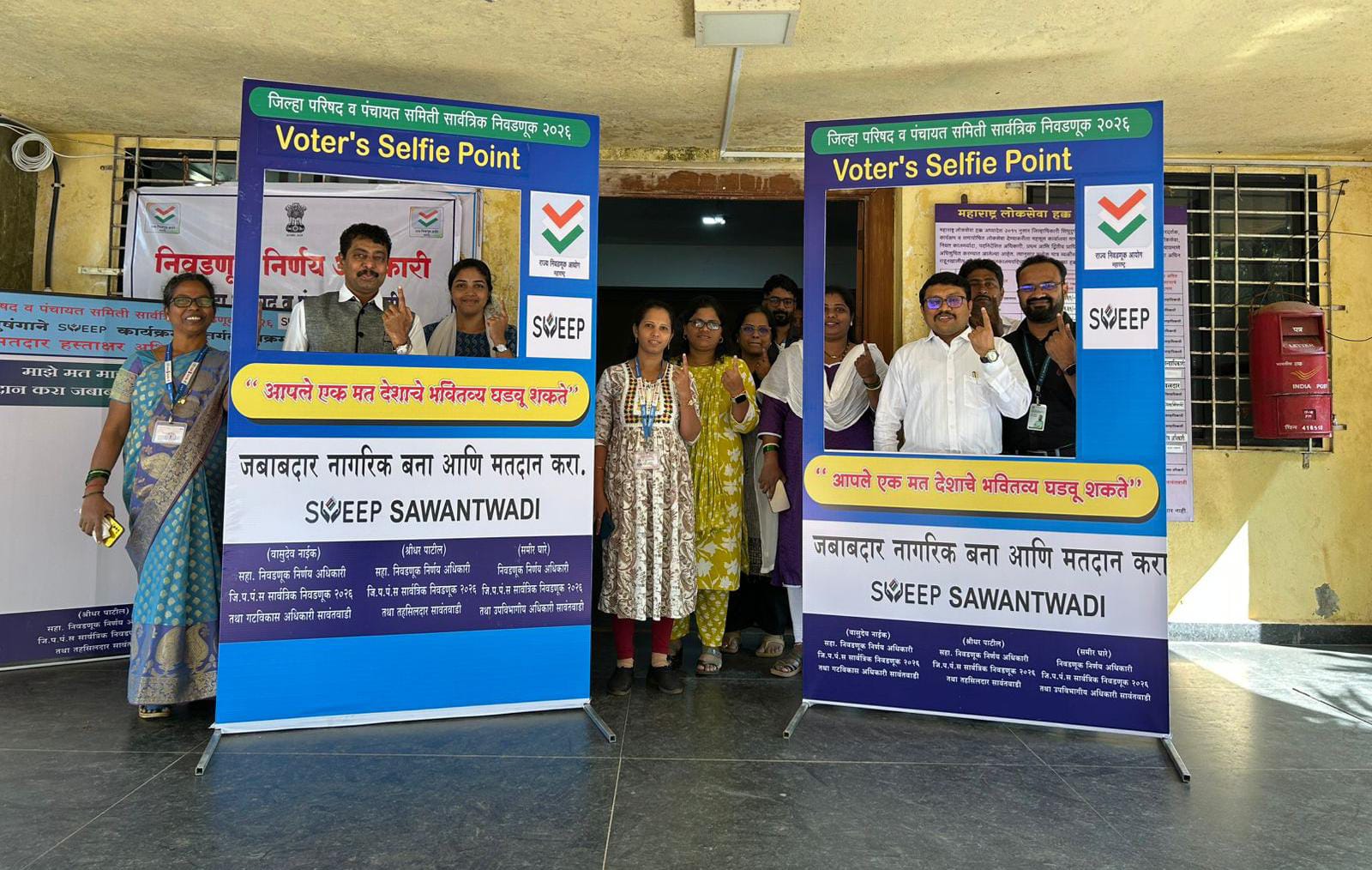 यावेळी श्री. घारे म्हणाले, राज्य निवडणूक आयोगाच्या कार्यक्रमानुसार सावंतवाडीत जिल्हा परिषद व पंचायत समिती विभागातील मतदारांना मतदानाबाबत जागरूक करण्यासाठी विविध उपक्रम राबविण्यात येत आहे. लोकांनी जास्तीत जास्त मतदान करावं यासाठी आज सेल्फी पॉईंटच लोकार्पण केलं. तसेच गावागावात जाऊन स्वाक्षरी मोहीम राबवून देखील मतदान जनजागृती करण्यात येणार असल्याची माहिती त्यांनी दिली. यावेळी सहाय्यक निवडणूक निर्णय अधिकारी तथा तहसीलदार श्रीधर पाटील, गटविकास अधिकारी वासुदेव नाईक, निवडणूक नायब तहसीलदार श्रीम. तारी, कर निर्धारक अधिकारी प्राची पाटील, बांदेकर कॉलेजचे तुकाराम मोरजकर आदी उपस्थित होते.