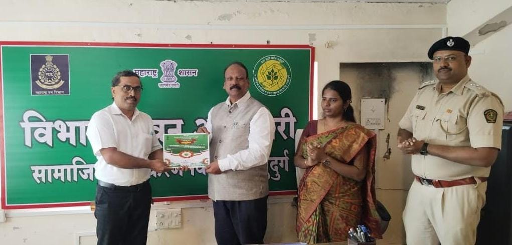राष्ट्रीय हरितसेना योजना अंतर्गत सामाजिक वनीकरण विभागासोबत केलेल्या उल्लेखनीय कामगिरीबद्दल श्री सद्गुरू सदानंद माऊली एज्युकेशनल फाउंडेशन संचालित डॉ. कुडाळकर हायस्कूल, मालवणच्या हरितसेना विभागाचा वन विभागातर्फे विशेष सन्मान करण्यात आला. प्रशालेचे हरितसेना विभागप्रमुख श्री. आठलेकर यांनी विभागीय वनअधिकारी श्री. राजेंद्र मगदूम यांच्या हस्ते गौरवप्रशस्तीपत्र स्वीकारले.
