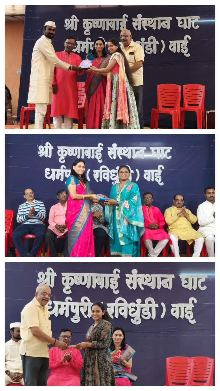 कुडाळ : धर्मपुरी वाई-सातारा येथे पार पडलेल्या ३९ व्या श्री कृष्णाबाई संस्थान घाट राज्यस्तरीय स्पर्धेत सावंतवाडी येथील रघुकुल स्वरविहारची शिष्या कु. पल्लवी पिळणकर हि विजेती ठरली. तर कु. श्रुती सावंत हिला उत्तेजनार्थ पारितोषिक प्राप्त झाले. सुगम संगीत स्पर्धेत कु. पूर्वा धाकोरकर हिला दुसरा क्रमांक मिळाला.