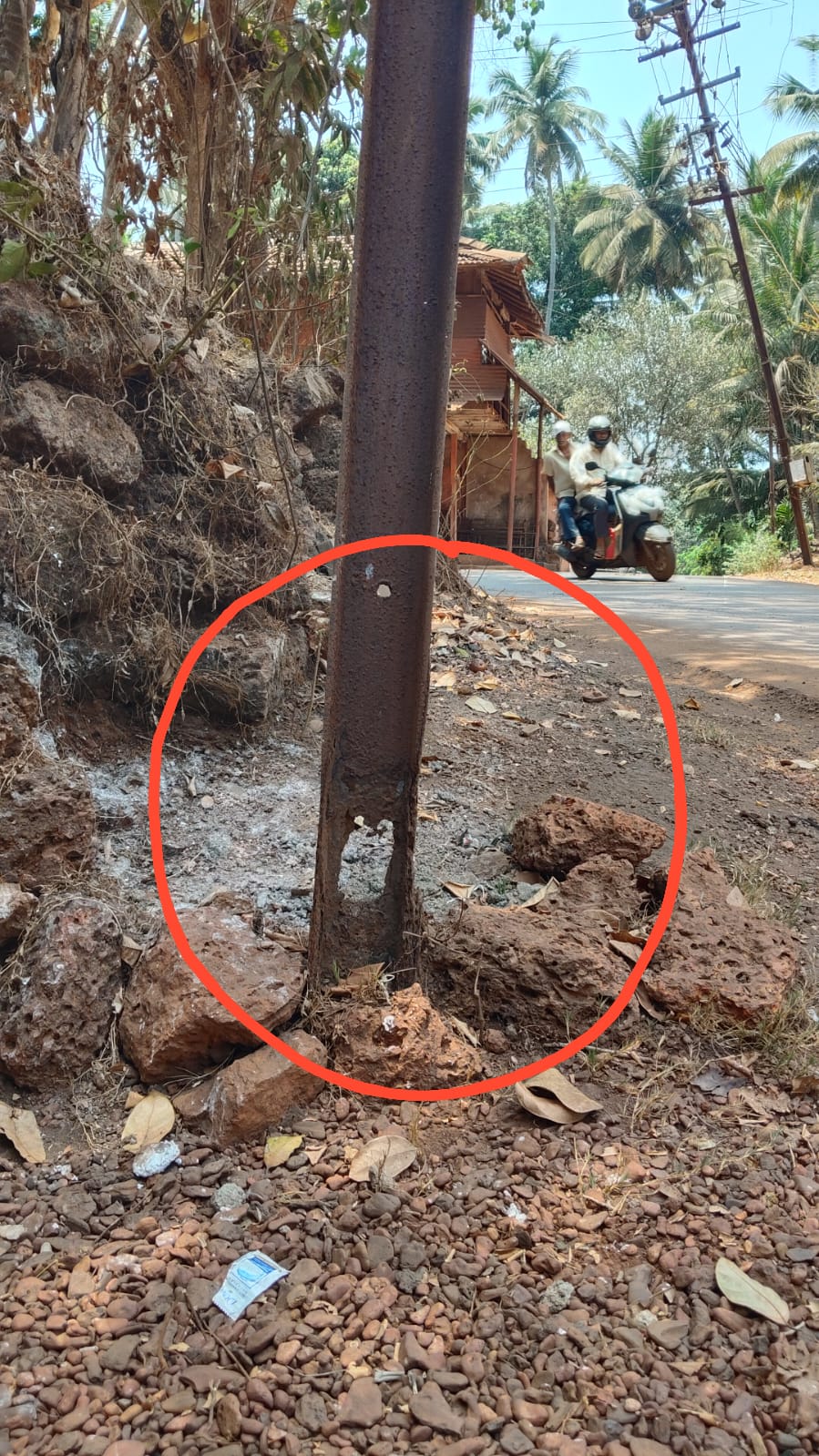 भर वस्तीत आणि रस्त्याच्या अगदी बाजूलाच असलेला हा धोकादायक पोल पूर्णतः गंजून गेला असून तो पडण्याच्या स्थितीत आहे.