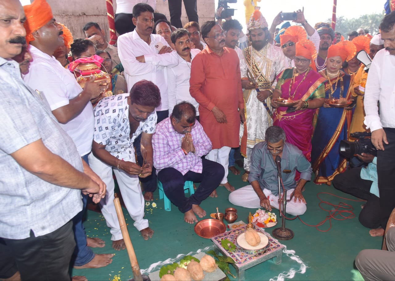 मालवण येथील राजकोट किल्ला परिसरात शिवाजी महाराजांचा पुतळा उभारण्यात येणार आहे. या पार्श्वभूमीवर 32 गड किल्ल्यांतील गोळा करण्यात आलेली माती एकत्र करुन शिवपुतळा उभारणीच्या स्थळी पालकमंत्री रविंद्र चव्हाण यांच्या हस्ते भूमिपूजन करण्यात आले. यावेळी ढोल ताशांच्या गजरात निघालेल्या 'माती कलश' रॅलीचा शुभारंभ देखील पालकमंत्र्यांच्या हस्ते झाला. याप्रसंगी आमदार निरंजन डावखरे, माजी खासदार निलेश राणे, जिल्हाधिकारी किशोर तावडे, मुख्य कार्यकारी अधिकारी प्रजित नायर आदी उपस्थित होते.