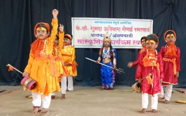 फोटोओळी – अंगणवाडीच्या मुलांनी समुहनृत्य सादर केले.