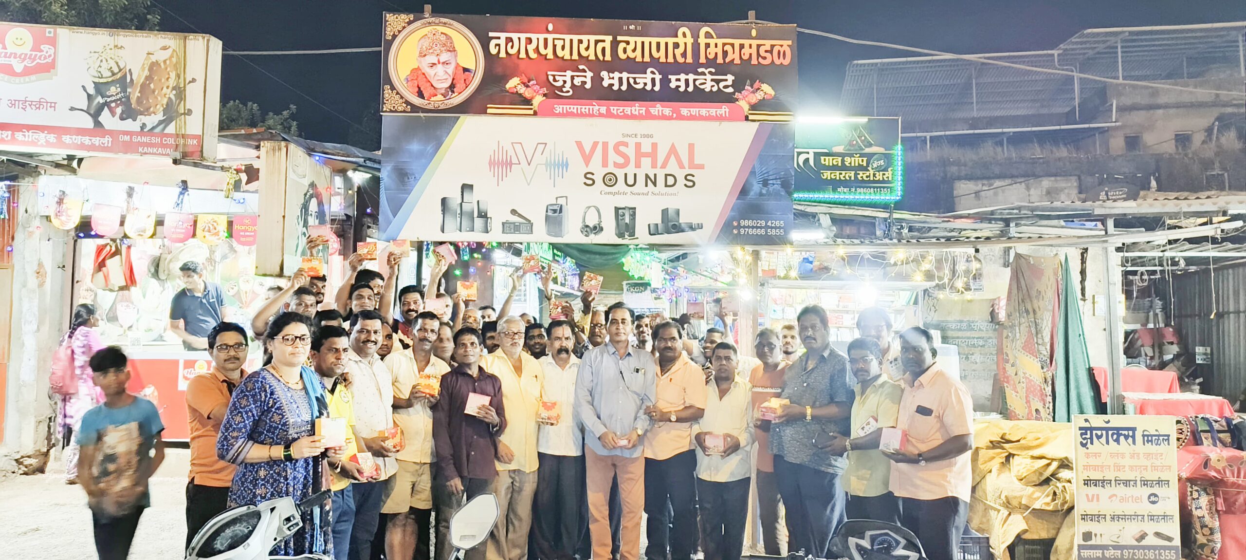 ⚡कणकवली ता.१५-: कणकवली पटवर्धन चौक येथे असणारे नगरपंचायत भाजी मार्केटमधील सर्व बंधु आणि भगिनींना, तसेच व्यापारी मित्रंडळींना संजय मालंडकर, महेश काणेकर, सुनिल काणेकर, भाई काणेकर, पी. टी. चव्हाण यांच्या नेतृत्वाखाली समस्त व्यापारी वर्गाला राजेंद्र मनोहर पेडणेकर यांच्या येणाऱ्या वाढदिवसाचे औचित्य साधत दिपावली पाडव्याला सर्वांचे तोंड गोड केले.