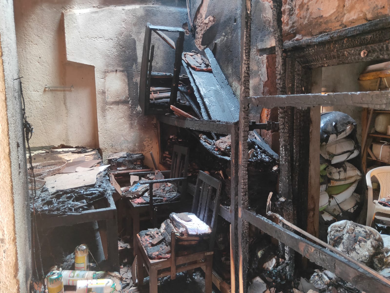 फोटोओळी – अचानक लागलेल्या आगीत खरेदी विक्री संघाचे नुकसान झाले.