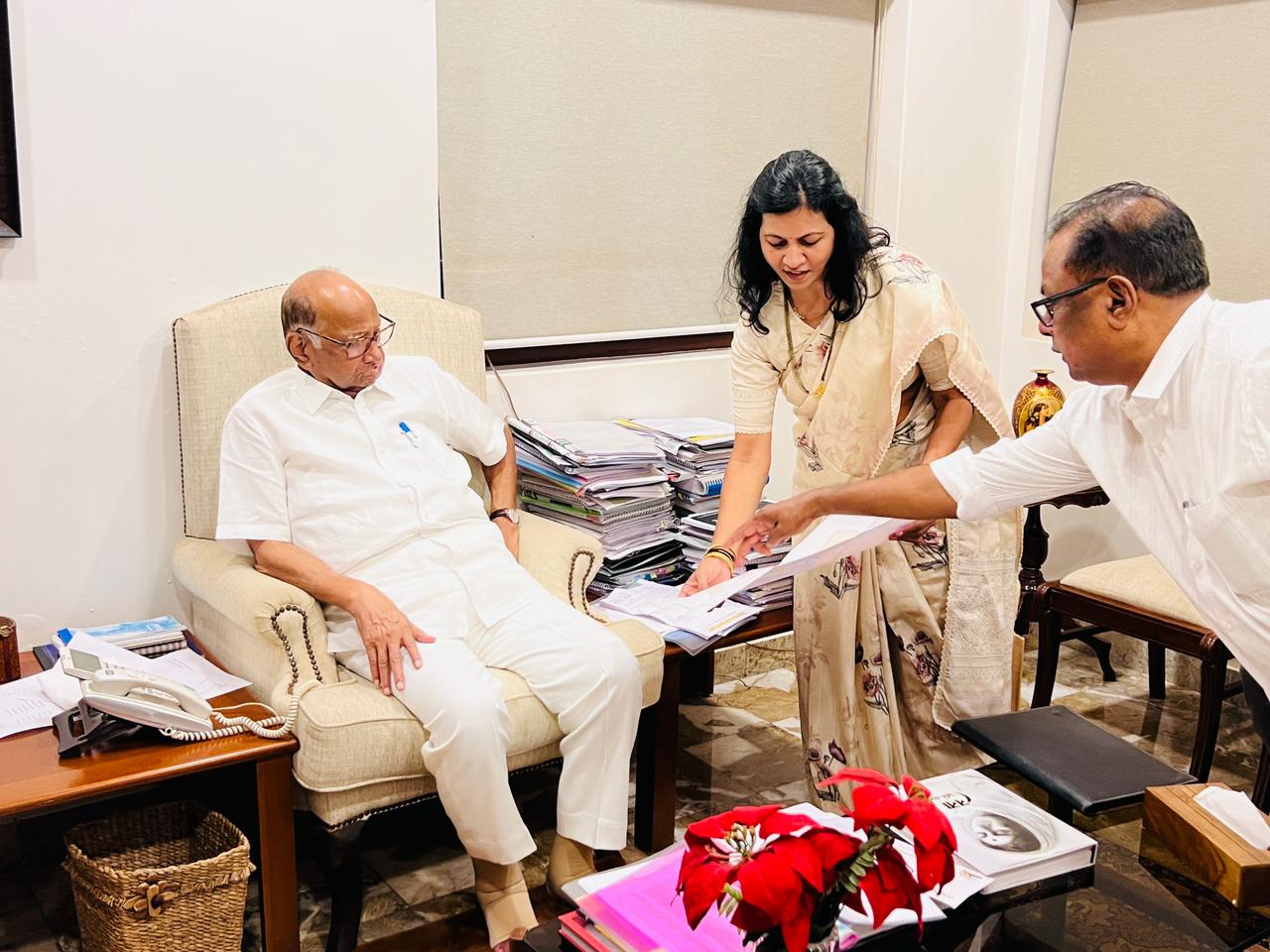 अर्चना घारे: स्थानिक नागरिकांच्या उपस्थितीत शरद पवार यांची भेट घेत केली मागणी..