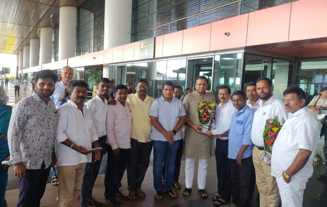 विधानसभेचे अध्यक्ष ऍड. राहुल नार्वेकर यांचे आज मोपा येथील मनोहर आंतरराष्ट्रीय विमानतळावर भाजपच्या पदाधिकाऱ्यांच्या वतीने संजू परब यांनी स्वागत केले.