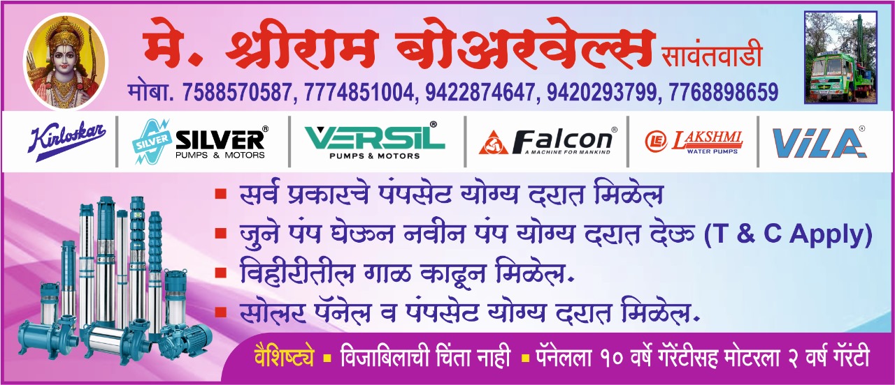 💧बोअरवेलचे पाणी सर्व्हे करतेवेळी ॲडव्हान्स (डिपॉझिट) म्हणून🪙 रु.६०,०००/- व ड्राय एरीया (कमी पाण्याचा भाग)🚿 असेल तर रु.७०,०००/- पर्यंत ॲडव्हान्स रक्कम💸 जागेवरती भरुन घेतली जाईल. त्यानंतर पाणी पॉईंट सर्व्हे केला जाईल, (गोवा एरियामध्ये बोअरवेल ॲडव्हान्स💰 १ लाख रुपये भरुन घेतले जाईल.)💦