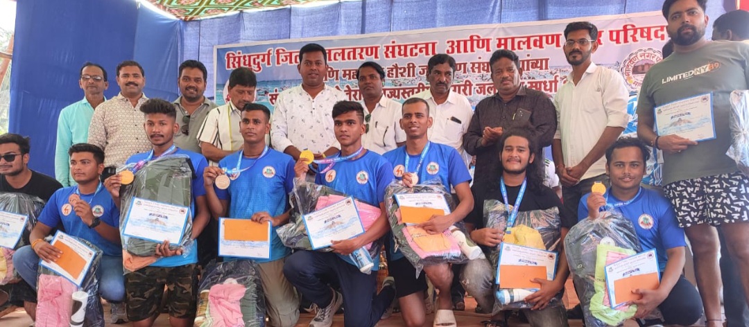 ⚡मालवण ता.१६-: सिंधुदुर्ग जिल्हा महाराष्ट्र राज्य जलतरण संघटना व मालवण नगरपालिका आणि महाराष्ट्र हौशी जलतरण संघटना यांच्यावतीने मालवण चिवला बीच येथे आयोजित राज्यस्तरीय जलतरण स्पर्धेला महाराष्ट्र राज्यासह इतर ठिकाणच्या स्पर्धकांचा उत्स्फूर्त प्रतिसाद लाभला. या तेरा वर्षांनंतर प्रथमच सिंधुदुर्गच्या भाग्येश पालव या जलतरणपटूने पाच किलोमीटरच्या स्पर्धेत सुवर्णपदक पटकावले. भाग्येश पालव हा मालवण तालुक्यातील पोईप गावचा असून त्याच्या या यशामुळे राज्यस्तरीय जलतरण स्पर्धेत मालवणसह सिंधुदुर्गचे नाव झळकले आहे. तर स्पर्धेत मुलांच्या गटात पालघरच्या यश जाधव तर मुलींच्या गटात नागपूरच्या संजना जोशी यांनी वेगवान जलतरणपटूचा बहुमान पटकाविला.