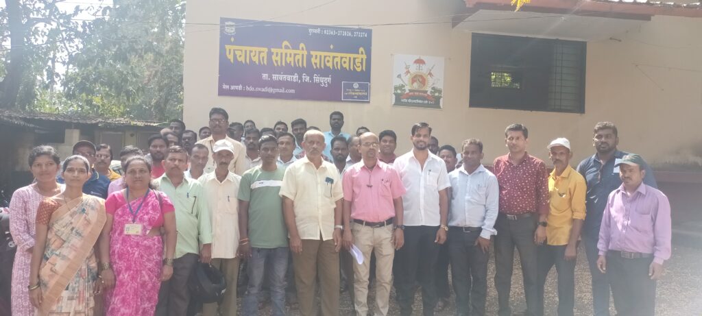 ⚡सावंतवाडी ता.१८-: राज्यव्यापी ग्रामपंचायत कर्मचा-यांच्या कामबंद आंदोलनात सावंतवाडी तालुक्यातील 63 ग्रामपंचायतीचे कर्मचारी सहभागी झाले आहेत त्यांनी सावंतवाडी पंचायत समिती समोर निदर्शने करून गटविकास व्हीएम नाईक यांना निवेदन दिले.