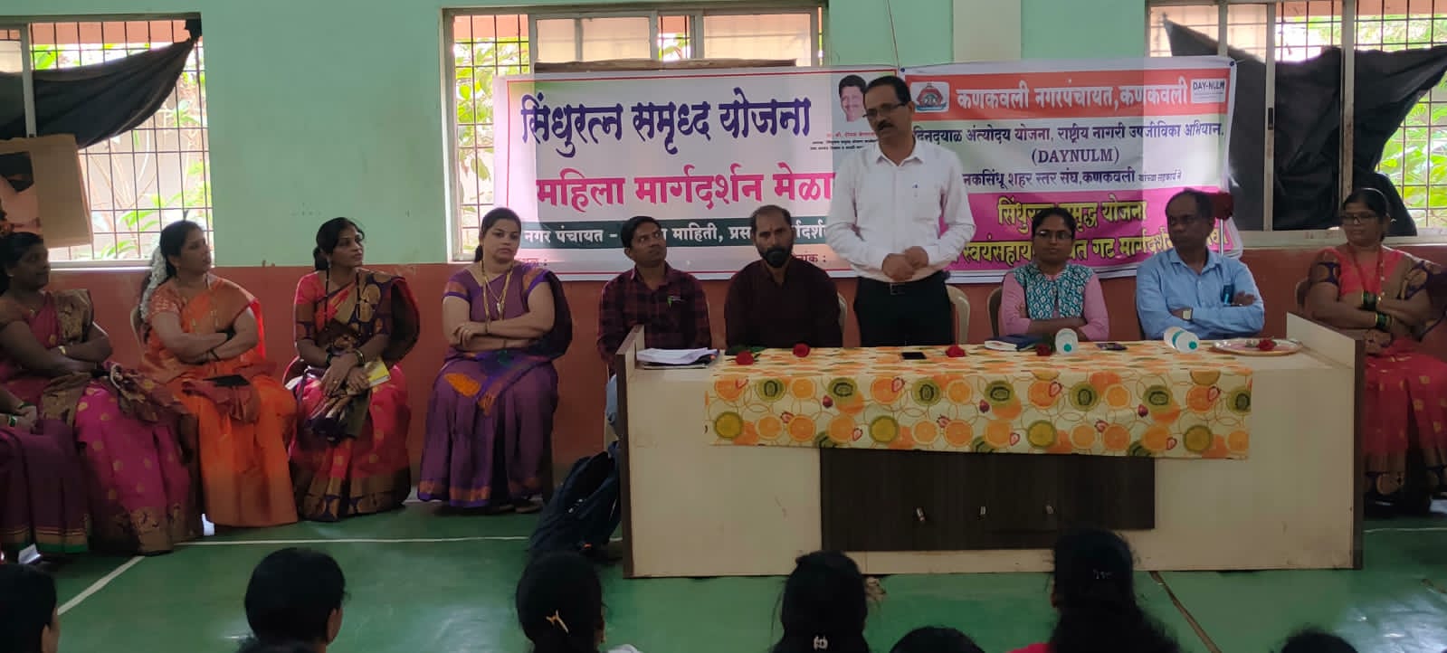 ⚡कणकवली ता.२३-: कणकवली नगर पंचायत,दिनदयाळ अत्योदय योजना, राष्ट्रीय नागरी उपजीविका अभियान अंतर्गत स्थापित कनकसिंधू शहर स्तर संघ व सिंधुरत्न समृद्ध योजना यांच्या सहकार्यने स्वयंसहायता महिला बचत गट मार्गदर्शन मेळावा आयोजित करण्यात आला.