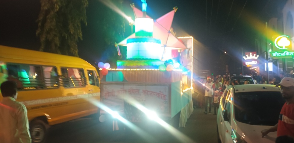 ⚡सावंतवाडी ता.२३-: नाताळचे औचित्य साधून ख्रिस्ती बांधवांच्या माध्यमातून आज शहरात शांतता फेरी काढण्यात आली. यावेळी सहभागी झालेल्या ख्रिस्ती बांधवांच्या वतीने शांततेचा संदेश देण्यात आला. यावेळी विविध देखावे या मिरवणुकीचे आकर्षण ठरले. शहरातून ही शांतता फेरी फिरवण्यात आली. ही फेरी पाहण्यासाठी शहरात सर्वधर्मीय उपस्थित राहिले होते.