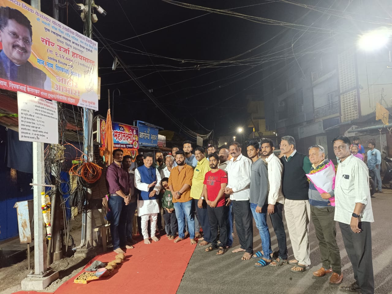 आमदार दीपक केसरकर यांच्या स्थानिक विकास निधीतून श्री भवानी चौक सालईवाडा रिक्षा स्टॅण्ड नजीक मेन रोड तिठा येथील सौर ऊर्जा हायमास्टचे लोकार्पण करण्यात आलं. यावेळी श्री साईबाबा मंदिर येथे दीपक केसरकर यांचा स्थानिकांच्या वतीने शहरामध्ये भरघोस निधी देऊन विकासात्मक कामे केल्याबद्दल सन्मान करण्यात आला. तर शहरातील गरजेच्या ठिकाणी हायमास्टसाठी विशेष प्रयत्न करणाऱ्या युवा रक्तदाता संघटनेचे अध्यक्ष देव्या सुर्याजी यांचा विशेष सन्मान मंत्री दीपक केसरकर यांच्या हस्ते करण्यात आला. याप्रसंगी माजी उपनगराध्यक्ष राजन पोकळे,युवा रक्तदाता संघटना अध्यक्ष देव्या सूर्याजी, माजी नगरसेवक सुरेंद्र बांदेकर,जावेद शेख,संतोष गांवस,साबाजी नार्वेकर,शैलेश गवंडळकर,सुनिल नाईक,डॉ. मुरली चव्हाण,बाजारपेठ नवरात्रोत्सव मंडळ अध्यक्ष अर्चित पोकळे, नगरपरिषदेचे प्रदीप सावरवाडकर,कॉन्ट्रॅक्टर प्रसाद नार्वेकर,स्वीय सहाय्यक रामचंद्र आंगणे,विलास बिद्रे,सुजित कोरगांवकर,आबा केसरकर,हॉटेल व्यावसायिक पांडुरंग वर्दम,प्रतिक बांदेकर,प्रथमेश प्रभू,मेहर पडते,गौतम माठेकर,नंदू शिरोडकर,पंकज बिद्रे,जोसेफ आल्मेडा,पवन बिद्रे,यल्लापा दोडामणी,मंथन जाधव,शुभम बिद्रे,वैभव दळवी यांसह बाजारपेठ मधील नागरीक उपस्थित होते.