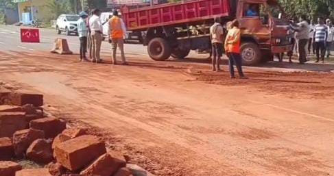 ⚡कणकवली ता.२५-: मुंबई- गोवा महामार्गावर वागदे येथे चिरे वाहतूक करणारा आयशर ट्रक पलटी होऊन अपघात झाला.या अपघातात तीन जण किरकोळ जखमी झाले आहेत.अपघातानंतर महामार्गावर तसेच आजूबाजूला मोठ्या प्रमाणात चिरे पसरले होते. तसेच काही काळ महामार्गावरील वाहतूक देखील ठप्प झाली होती. जेसीबीच्या सहाय्याने ट्रक बाजूला करून रस्त्यावरील चिरे तसेच चिऱ्यांची पडलेली माती बाजूला करून महामार्ग वाहतुकीस सुरळीत करण्यात आला.