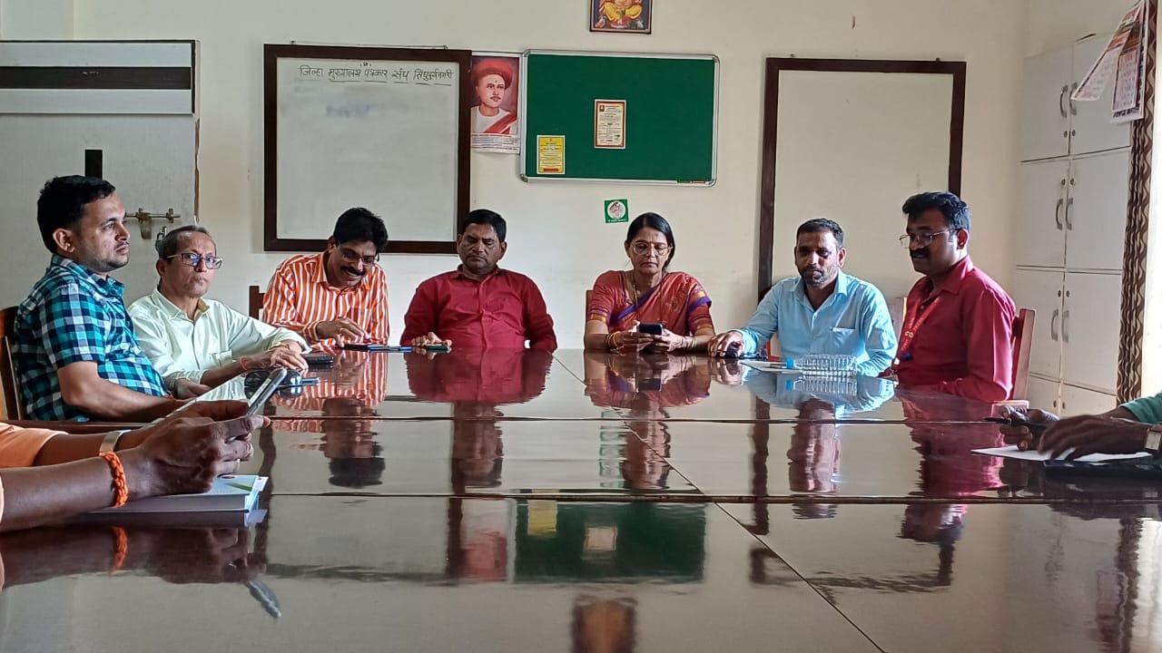 सिंधुदुर्ग जिल्हा पत्रकार समितीच्या कार्यकारिणीची आज सिंधुदुर्गनगरी येथील आद्य पत्रकार बाळशास्त्री जांभेकर भवन येथे पुरस्कार निवडीसाठी बैठक संपन्न झाली. यावेळी पुरस्कार निवडी निश्चित झाल्यानंतर जिल्हाधिकारी कार्यालयातील पत्रकार कक्षात अध्यक्ष उमेश तोरसकर यांनी घोषणा केली. यावेळी उपाध्यक्ष बाळ खडपकर, सचिव देवयानी वरसकर, सहसचिव महेश रावराणे, सदस्य महेश सरनाईक, राजन नाईक, संतोष राऊळ, आदी उपस्थित होते.