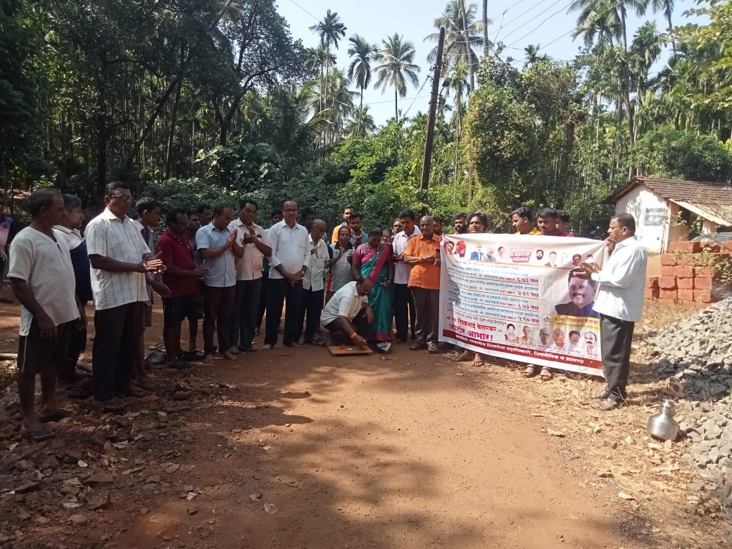सावंतवाडी : असनिये येथील श्री देवी माऊली मंदीर ते टेंबवाडी रस्ता मजबुतीकरण करणे कामाचे उदघाटन शिवसेना जिल्हाप्रमुख अशोक दळवी यांच्या हस्ते श्रीफळ वाढवुन करण्यात आले. राज्याचे शिक्षणमंत्री दीपक केसरकर यांच्या मार्फत सन २०२३-२४ २५/१५