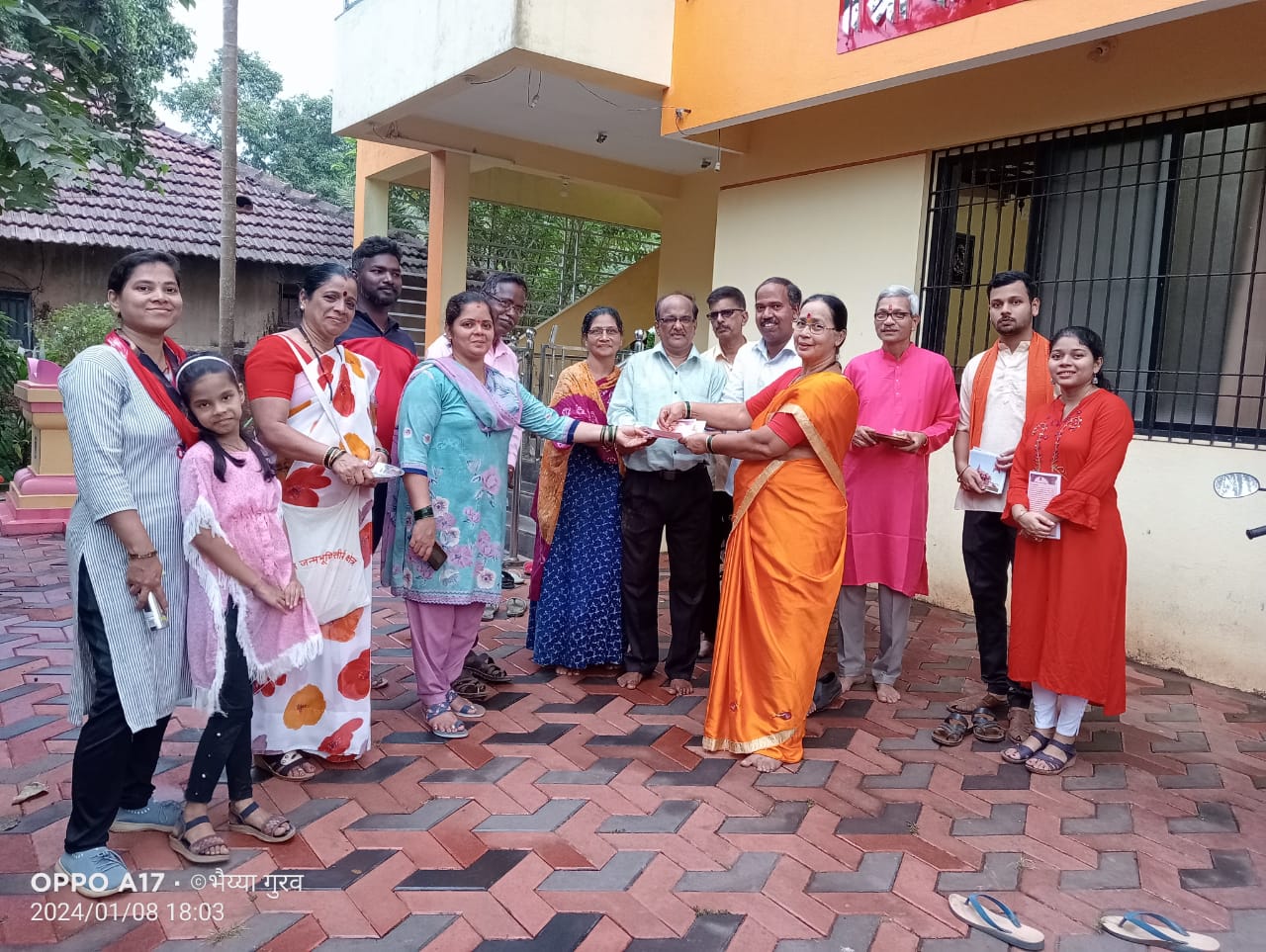 अयोध्या येथे सोमवार दि. २२ जानेवारी श्रीरामांच्या नूतन बालमूर्ती नवनिर्मित श्री राम मंदिरातील गर्भगृहात स्थापित करून त्याच प्राणप्रतिष्ठा करण्यात येणार आहे. या पार्श्वभूमीवर श्रीराम जन्मभूमी अयोध्या येथून आलेल्या निमंत्रक मंत्राक्षता गावागावांतील रामभक्तांपर्यंत पोहचविल्या जात आहेत. वेंगुर्ला शहरासह तालुक्यात सर्वच घरांमध्ये या मंत्राक्षता पोहचविला जात आहेत. शहरातील १२ नंबर वॉर्डमध्ये श्रीरामभक्तांनी या मंत्राक्षता घरोघरी पोहचविल्या. श्री राम मंदिरच्या या कार्यात विनय गोगटे, राहूल मोर्डेकर, सोहम भगत, वृंदा मोर्डेकर, विनिता सामंत, पूर्वा सामंत, विकास मोर्ये, शुभांगी कनयाळकर, भैय्या शिरसाट, अक्षया शिरसाट, सर्वेश शिरसाट, वैशाली वैद्य, श्रेया मयेकर, शरद मेस्त्री, राजेश कांबळी, दिगंबर वाडकर, भैय्या गुरव आदी सहभागी झाले होते.