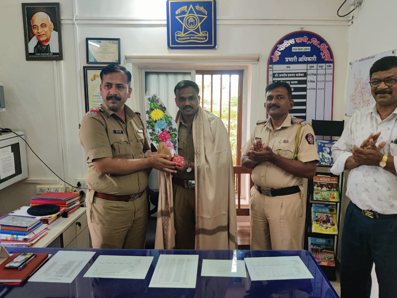 सहाय्यक पोलीस निरीक्षक काळे यानी सत्कार करीत दिल्या शुभेच्छा..