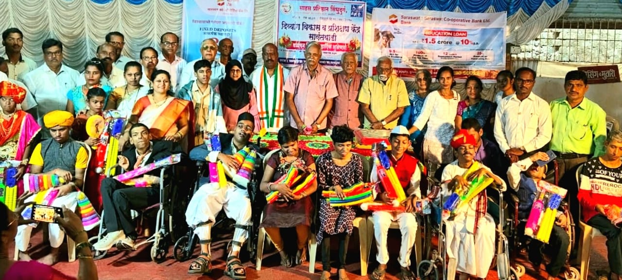 ⚡सावंतवाडी ता.२८-: प्रजासत्ताक दिनानिमित्त सामाजिक बांधिलकीच्या माध्यमातून दिव्यांग मुलांना खेळाचे साहित्य व खाऊवाटपा व साहस प्रतिष्ठान सिंधुदुर्ग संचालित दिव्यांग विकास व प्रशिक्षण केंद्र सावंतवाडीचा पाचवा वर्धापन दिन नुकताच सावंतवाडी मधील आदिनारायण मंगल कार्यालय येथे मोठ्या उत्साहात साजरा करण्यात आला. यावेळी सर्व अभ्यागातांचे स्वागत प्रशिक्षण केंद्रातील विद्यार्थ्यांनी बनविलेल्या आकर्षक फुलांनी करण्यात आले.