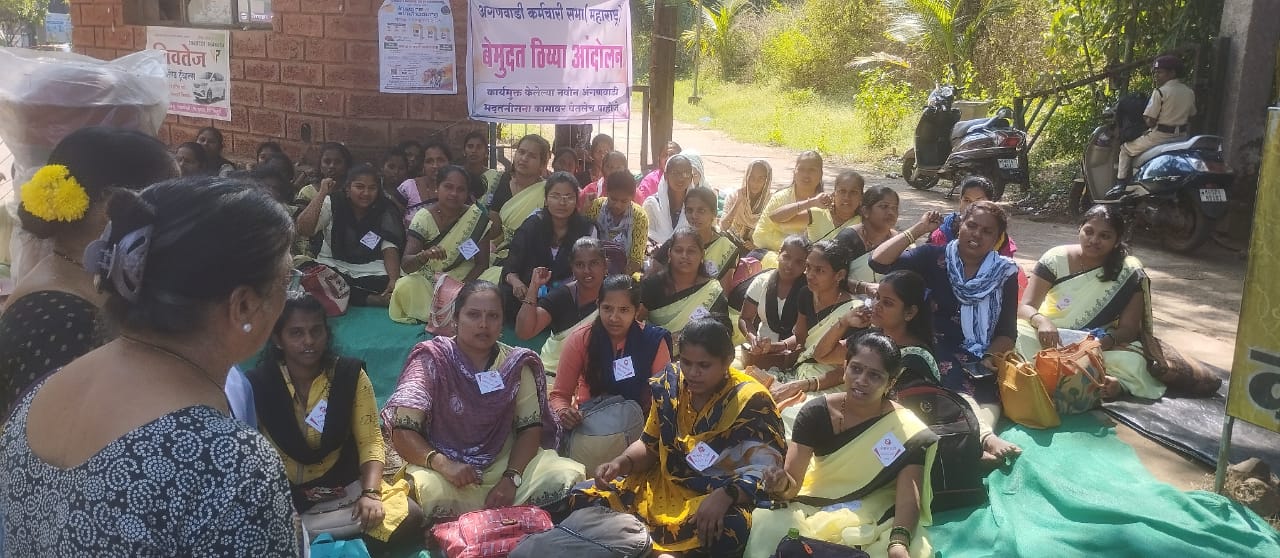 पुन्हा सेवेत घेण्यासाठी केला ठिय्या: अंगणवाडी कर्मचाऱ्यांवर झालेल्या अन्यायाकडे लक्ष वेधले…