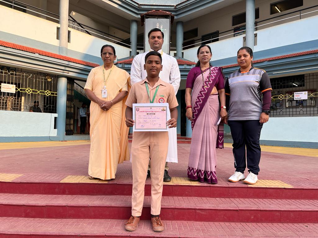 प्रशालेचे प्राचार्य फादर रिचर्ड सालदान्हा यांनी प्रशस्तीपत्र देऊन त्याचा गौरव केला व त्याच्या पुढील वाटचालीस शुभेच्छा दिल्या. यावेळी प्रशालेच्या उपमुख्याध्यापिका सिस्टर मेबल कार्व्हालो ,पर्यवेक्षिका सौ.मेघना राऊळ तसेच सर्व शिक्षक व शिक्षकेतर कर्मचारी उपस्थित होते.
