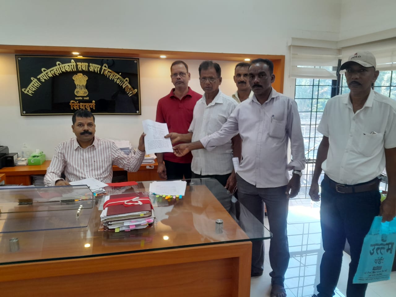 सन २०१७ च्या यादीतील ३०७७ शेतकरी छत्रपती शिवाजी महाराज शेतकरी सन्मान योजनेअंतर्गत अद्याप कर्जमाफी न मिळालेल्या उर्वरित शेतकऱ्यांना कर्जमाफीचा लाभ देण्याचा निर्णय शासनाने घेतला परंतु सिंधुदुर्ग जिल्ह्यातील शेतकरी अद्यापही कर्जमाफीच्या प्रतीक्षेत आहेत. याबाबत अनेकवेळा आंदोलने केली उपोषण केले तरी याबाबत शेतकऱ्यांना न्याय मिळाला नाही . आता शेतकऱ्या पुढे आत्महत्या शिवाय पर्याय उरलेला नाही. त्यामुळे २ लाख वरील कर्जदार शेतकऱ्यांना सरसकट कर्जमाफी दया . तसेच सक्तीची कर्ज वसूली तात्काळ थांबवावी . अशी मागणी या निवेदनातून केली आहे. यावेळी आग्नेय फर्नांडिस, अर्जुन नाईक, रामकृष्ण चिचकर ,प्रकाश वारंग, सुरेश गावकर, महेश चव्हाण,सुधीर परब, लाडू परब, श्यामसुंदर राय आदीं शेतकरी उपस्थित होते.