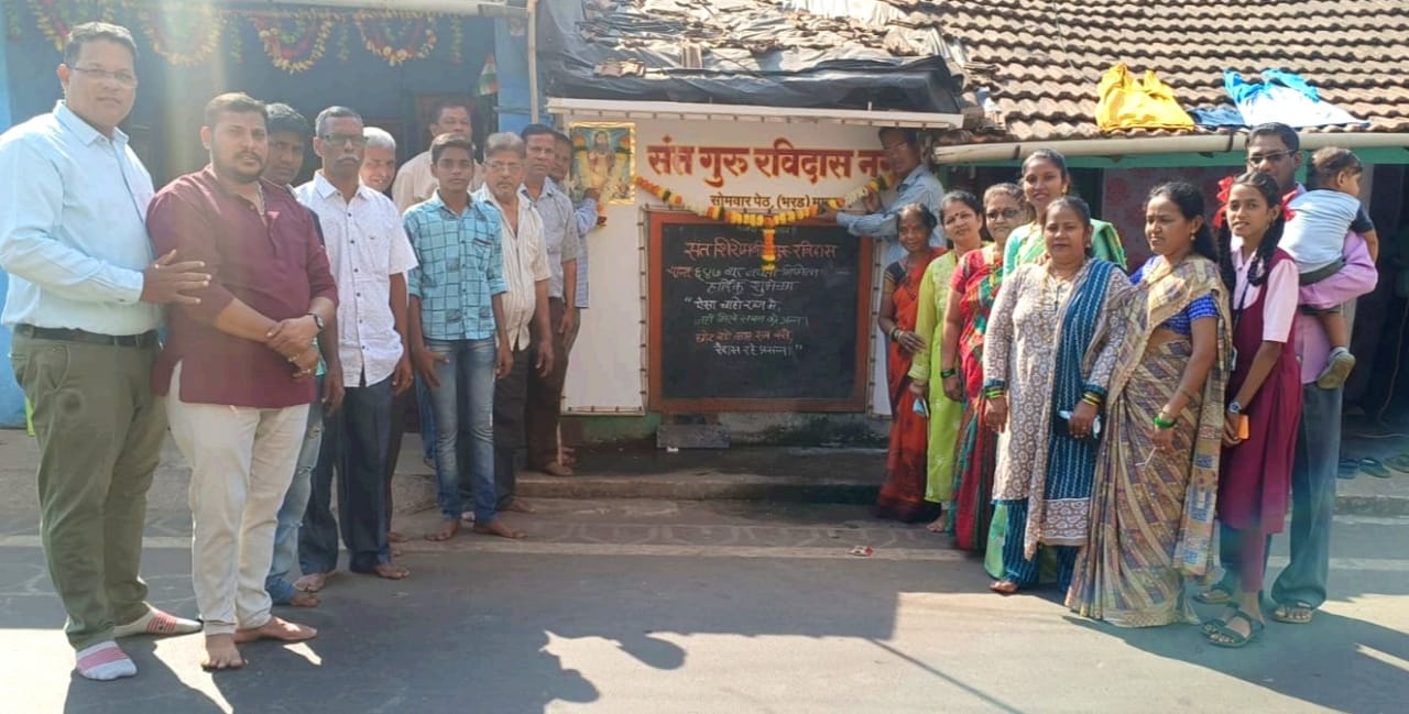 ⚡मालवण ता.१७-: मालवण सोमवार पेठ येथील संत गुरु रविदास नगर येथे संत गुरु रविदास जयंती उत्सव साजरा करण्यात आला. यावेळी सिंधुदुर्ग जिल्हा चर्मकार समाज उन्नती मंडळाचे मालवण शहर अध्यक्ष गणेश पाडगावकर यांच्यावतीने समाजातील पारंपारिक चर्म व्यवसाय करणाऱ्या रमेश पाडगावकर, गुरुनाथ चव्हाण, दत्तराम माणगावकर यांचा प्रतिमा व पुष्प देऊन सन्मान करण्यात आला.