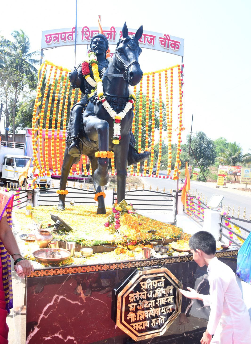 त्यानंतर ब्राम्हणांच्या व गावातील मानकऱ्यांच्या साक्षीने छत्रपती शिवाजी महाराज अभिषेक सोहळा, पूजा व आरती पार पडली. सायंकाळी होळकर घर ते छत्रपती शिवाजी महाराज चौकपर्यंत बाईक रॅली व ढोल ताशा पथक मिरवणूक काढण्यात आली.