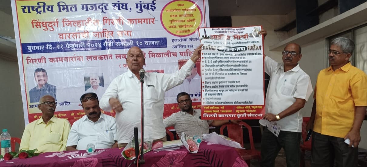 यावेळी सिंधुदुर्ग गिरणी कामगार संघाचे अध्यक्ष शामसुंदर कुंभार यांनी प्रास्ताविक तर उपाध्यक्ष अभिमन्यू लोंढे यांनी सुत्रसंचलन केले.