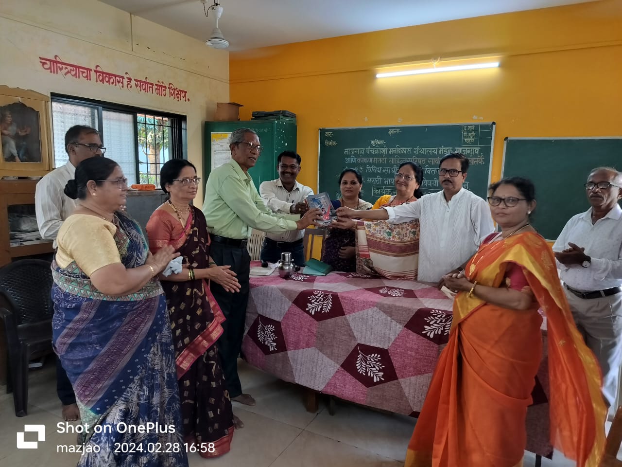 माजगाव पंचक्रोशी मानव विकास ग्रंथालय व कोकण मराठी साहित्य परिषद सावंतवाडी शाखा यांच्या संयुक्त विद्यमाने जिल्हा परिषद शाळा क्रमांक 1 येथे मराठी भाषा दिन कार्यक्रम व बक्षीस वितरण समारंभ आयोजित करण्यात आला होता यावेळी कार्यक्रमाच्या अध्यक्षस्थानी सौ परब तर प्रमुख पाहुणे म्हणून सरपंच अर्चना सावंत कोकण मराठी साहित्य परिषदेचे सावंतवाडी शाखेचे तालुकाध्यक्ष एडवोकेट संतोष सावंत एडवोकेट नकुल पार्सेकर उपसरपंच संतोष वे जरे माझगाव ग्रंथालयाचे अध्यक्ष चंद्रकांत सावंत एस बी सावंत आर के सावंत बीएस चौरे पोलीस अधिकारी लोकेश कानसे श्री गुंजाळ सिद्धेश कानसे मीरा कासार शीतल सावंत ग्रंथालय कर्मचारी सौ मधु कुंभार सौ माया साळगावकर सौ रोशनी निबरे भरत सावंत सु नयना कासार कासारआधी उपस्थित होते यावेळी अध्यक्ष स्थानावरून बोलताना सौ परब पुढे म्हणाल्या मराठी भाषा टिकवण्याच्या दृष्टीने माझगाव ग्रंथालय विविध उपक्रम घेत आहे हे कौतुकास्पद आहे खऱ्या अर्थाने मराठी भाषा आज तिकडे आवश्यक आहे त्यासाठी लिहिते व्हा व्यक्त व्हा तुम्ही दररोज जे काही बोलता वावरता ते लिहीत जा आज मराठी भाषा सातासमुद्रा पार जतन केली जात आहे तिचे संवर्धन होत आहे मग आपणच या मराठी भाषेला आता वाचवायला हवे ग्रामीण भागात खऱ्या अर्थाने मराठी भाषा टिकली जात आहे पण शहरी भागात आपणच मराठी भाषेला विसरत चाललो आहोत मराठी भाषा टिकण्यासाठी मराठी संवर्धन व जतन होण्यासाठी आपणच जे जे मराठीत आहे आणि जे जे मराठीसाठी कार्यरत आहे ते टिकवण्याचा प्रयत्न करा असे त्या म्हणाल्या यावेळी प्रमुख पाहुणे म्हणून बोलताना सरपंच सौ अर्चना सावंत कोकण मराठी साहित्य परिषद सावंतवाडी शाखेचे तालुकाध्यक्ष एडवोकेट संतोष सावंत एडवोकेट नकुल पार्सेकर आदींनी ग्रामीण भागातील विद्यार्थी खऱ्या अर्थाने गुणवंत आहेत त्यांच्यामध्ये सुप्त गुण लपले आहेत ते खऱ्या अर्थाने मराठी भाषा टिकत आहेत आज मोबाईलचा सर्रास वापर झाला आहे त्यामुळे वाचन आणि ग्रंथालय कडे वळण्याचे प्रमाण कमी झाले आहे हे जर टिकवायचे असेल तर आता आपण साहित्यिक आणि ग्रंथालयानेच त्यासाठी प्रयत्न करायला हवेत असे ते म्हणाले यावेळी निबंध वकृत्व चित्रकला आधी विविध स्पर्धा मध्ये यश मिळवलेल्या स्पर्धकांचा विद्यार्थ्यांचा प्रमाणपत्र देऊन गौरव करण्यात आला यावेळी प्रास्ताविक ग्रंथालयाचे अध्यक्ष चंद्रकांत सावंत यांनी केले तर सूत्रसंचालन लोकेश कानसे तर आभार प्रदर्शन शितल सावंत यांनी मानले यावेळी कोकण मराठी साहित्य परिषद सावंतवाडी शाखेच्या वतीने साहित्यिका तथा महाराष्ट्र साहित्य संस्कृती निवड मंडळाच्या उषा परब यांच्या तर्फे पुस्तकांचा संच माझगाव ग्रंथालयाला ग्रंथालय