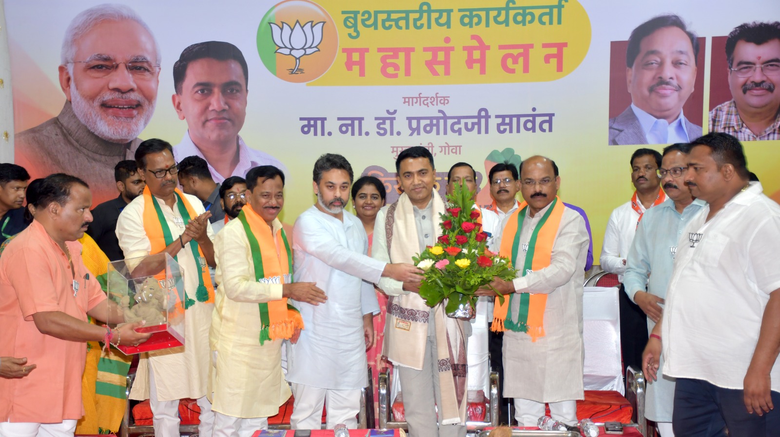 सावंतवाडी विधानसभा मतदारसंघाचे बुथस्तरीय कार्यकर्ते संमेलन आरपीडी हायस्कूलच्या सभा मंडपात पार पडले यावेळी व्यासपीठावर माजी खासदार निलेश राणे, भाजपा जिल्हाध्यक्ष प्रभाकर सामंत माजी जिल्हाध्यक्ष तथा आमदार राजन तेली, पहिला जिल्हाध्यक्ष श्वेता कोरगावकर प्रदेश युवा मोर्चा उपाध्यक्ष लखमराजे भोसले, जिल्हा बँक अध्यक्ष मनीष तळवी उपाध्यक्ष अतुल काळसेकर रणजित देसाई प्रमोद जठार बाळू देसाई संजू परब महेश सारंग आनंद नेवगी अजय गोंदावळे आधी पदाधिकारी उपस्थित होते.