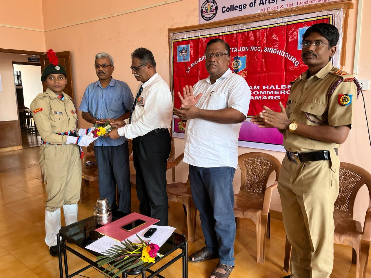 महाविद्यालयात दरवर्षी उत्कृष्ट कार्य करणाऱ्या एन. सी. सी. कॅडेटची निवड करून त्यांना रँक देऊन मान्यवरांच्या हस्ते सन्मान करण्यात येतो. त्याचबरोबर कॅडेटना त्यांच्या भावी सैनिकी करिअर बाबत मार्गदर्शन मिळावे म्हणून सैनिकी विषयावरील व्याख्याने आयोजित केली जातात . या कार्यक्रमात सी.पी.एल., सार्जंट, ज्यू. अंडर ऑफिसर, सिनियर.अंडर ऑफिसर अश्या विविध, रँक देऊन कॅसेट्स चा सन्मान करण्यात आला. महाविद्यालय विकास समितीचे सदस्य राजेंद्र केरकर सर यांनी विद्यार्थ्याना दोडामार्ग तालुक्यातील विविध देवराई बाबतची माहिती दिली व आपल्या गावातील अश्या विविध देवराईवर विद्यार्थ्यांनी संशोधन करावे असे आवाहन केले. महाविद्यालयाचे प्राचार्य डॉ. सावंत यांनीही मार्गदर्शन केले.