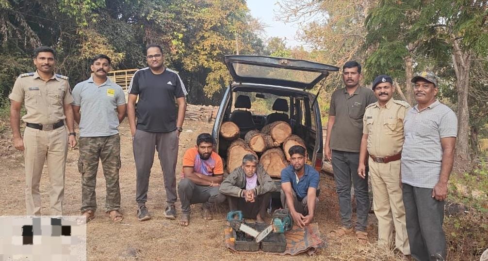 याचा सविस्तर वृत्तांत असा की सहाय्यक वनसंरक्षक सावंतवाडी श्री. सुनिल लाड यांचे नेतृत्वाखाली सावंतवाडी फिरतेपथक वनक्षेत्रपाल मदन क्षीरसागर, वनपाल मधुकर काशिद, पोलिस हवालदार गौरेश नाईक, वनरक्षक प्रमोद जगताप यांच्या गस्ती पथकाने दोडामार्ग-बांदा रस्त्यावर रात्रगस्त घालत असताना जांभळ्या रंगाची ओमनी,वाहन क्र.-GA 05 B 3524 हे वाहन संशयास्पदरित्या लाकडांच्या नगांची वाहतूक करीत असल्याचे जाणवले. त्यानुसार सदर वाहनाचा पाठलाग करून मौजे-पानवळ येथे सदरच्या वाहनाला अटकाव करण्यात आला. या वाहनाची झडती घेतली असता वाहनामध्ये खैर प्रजातीचे 8 मोठे नग, बॅटरी ऑपरेटेड दोन कटर मशीन, पाळ इत्यादी झाडतोडीचे साहित्य दिसून आले. या वाहनातून अवैध खैरवाहतूक करीत आलेल्या तीन आरोपींना, नावे- 1)गंगाराम रामा कोकरे, वय-37 वर्षे, रा.निरवडे, ता.सावंतवाडी, 2)बाबूराव भागू कोकरे, वय-50 वर्षे, रा.निरवडे, ता.सावंतवाडी, 3)अनिल विठ्ठल झोरे, वय-27 वर्षे, रा.डिगस, ता.कुडाळ अशी असून तिघांना चौकशीसाठी ताब्यात घेऊन अटक करण्यात आली. त्यांच्यावर भारतीय वन अधिनियम-1927 चे कलम - 41(2)(ब), कलम-42 नुसार गुन्हा दाखल करण्यात आला.