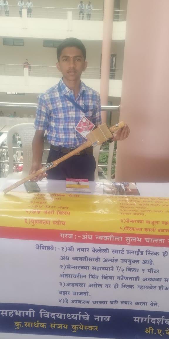 बीडवाडीचा विद्यार्थी याने सार्थक संजय कुयेस्कर याने स्मार्ट ब्लाइंड स्टिक ही विज्ञान प्रतिकृती तयार केली होती. ही प्रतिकृती लक्षवेधी ठरली.