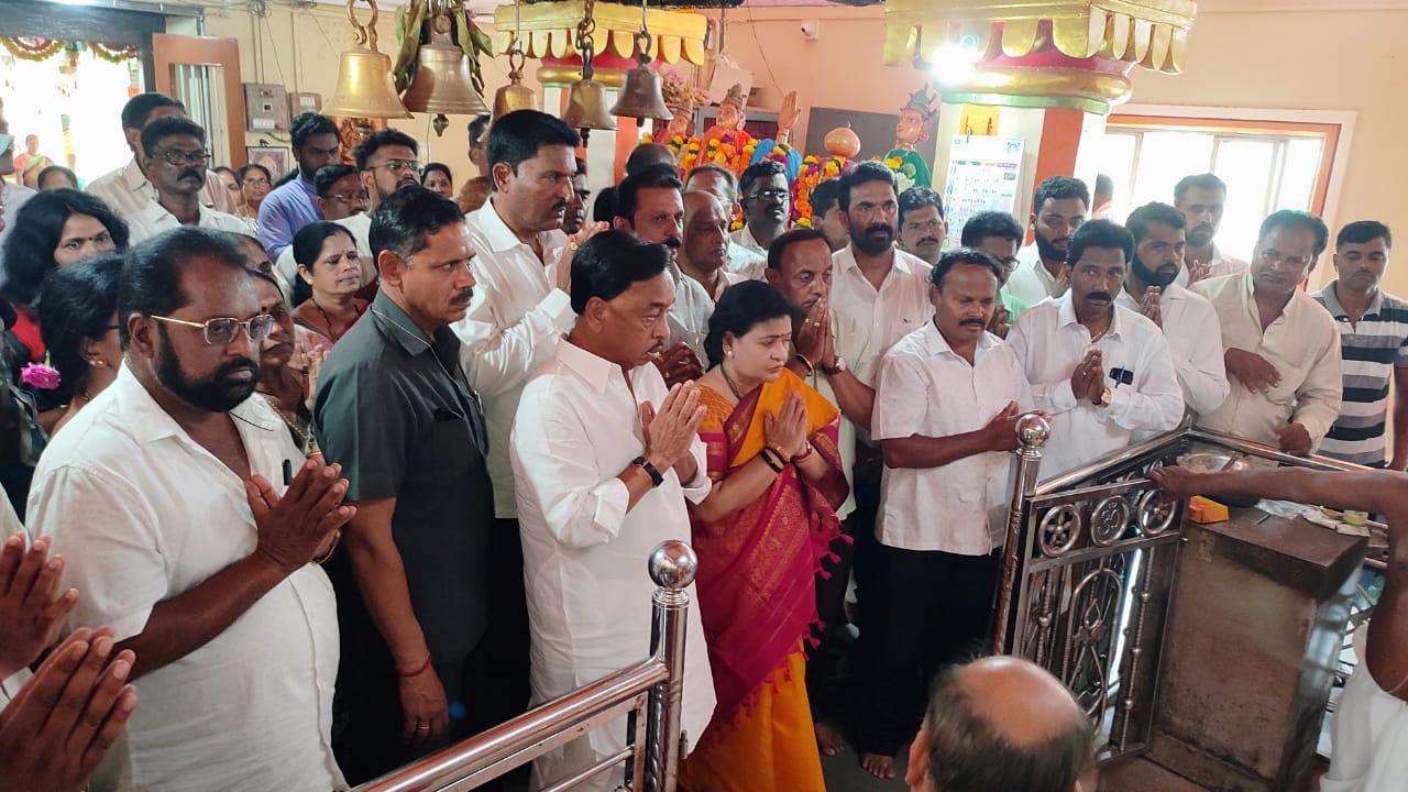 लोकसभा निवडणुकीसाठी रत्नागिरी सिंधुदुर्ग मतदार संघासाठी भाजप शिवसेना राष्ट्रवादी काँग्रेस महायुतीचे उमेदवार म्हणून केंद्रीय मंत्री नारायण राणे यांचे नाव जाहीर झाल्यावर आज दुपारी नारायण राणे यांनी मालवण तालुक्यातील कांदळगाव येथील आपले ग्रामदैवत श्री रामेश्वराचे सपत्नीक दर्शन घेतले. यावेळी भाजप कार्यकर्त्यांनी रामेश्वर चरणी “राणे यांचा बहूमताधिक्याने विजय व्हावा”, असे साकडे घातले. राणेसाहेब आगे बढो… हम तुम्हारे साथ है… अशा घोषणा यावेळी कार्यकर्त्यांनी दिल्या.