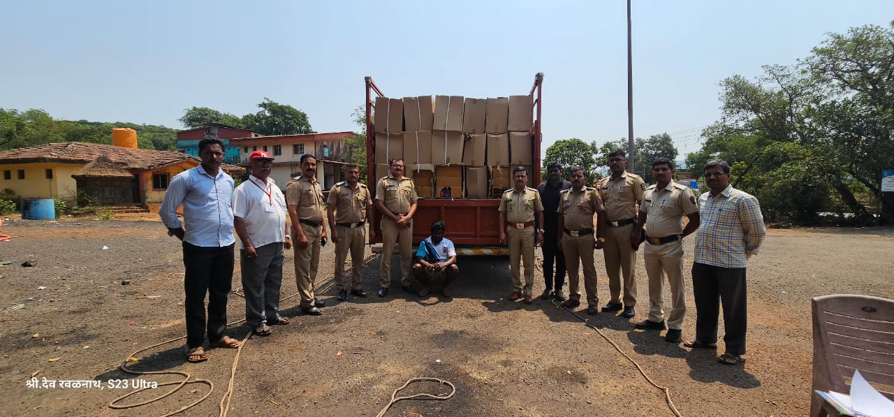 पोलीस चेक पोस्ट येथे लोकसभा सार्वत्रिक निवडणूक 2024 च्या अनुषंगाने SST पथक कार्यरत असून सदर ठिकाणी दिनांक बुधवारी आज सकाळी सहाच्या दरम्यान वाहनांची तपासणी करीत असताना सावंतवाडी कडून आंबोलीच्या दिशेने येत असलेला आयशर टेम्पो क्रमांक टी एन ७२-सी बी ७५०३ ही गाडी थांबवुन गाडीच्या हौदाची तपासणी केली असता त्यामध्ये अंदाजे ७०० पुठ्ठ्याचे बॉक्स असून त्यामध्ये गोवा बनावटीची दारू असल्याचे दिसून आले. बॉक्स मोजण्याची प्रक्रिया सुरू असून गुन्हा दाखल करण्याची प्रक्रिया पोलीस निरीक्षक तानाजी नारनवर यांच्या मार्गदर्शनाखाली सुरू असल्याचे हवालदार दत्ता देसाई यांनी सांगितले.