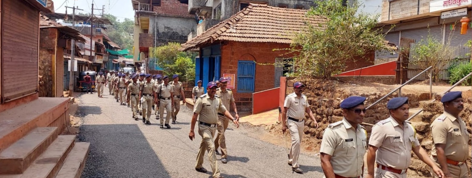 ⚡कणकवली ता.२९-: रत्नागिरी-सिंधुदुर्ग लोकसभा मतदारसंघात 7 मे रोजी मतदानाची प्रक्रिया पार पडणार आहे. मतदारांनी निर्भयपणे मतदान करावे याकरिता कणकवली पोलिसांनी खारेपाटण येथे संचलन केले. पोलीस उपनिरीक्षक शरद देठे यांच्या नेतृत्वाखाली पोलिसांच्या पथकाने संचलन केले. संचलनात कणकवली पोलीस ठाणे अंमलदार ग्रुप, राज्य राखीव पोलीस दलाची गोंदिया, पुणे येथील शीघ्र दलाची तुकडी असे मिळून एकूण ९० पोलीस कर्मचारी सहभागी झाले होते. खारेपाटण एसटी बसस्थानक , खारेपाटण एसटी बसस्थानक ते खारेपाटण बाजारपेठ मार्गे घोडेपाथर बंदरपर्यंत संचलन केले.