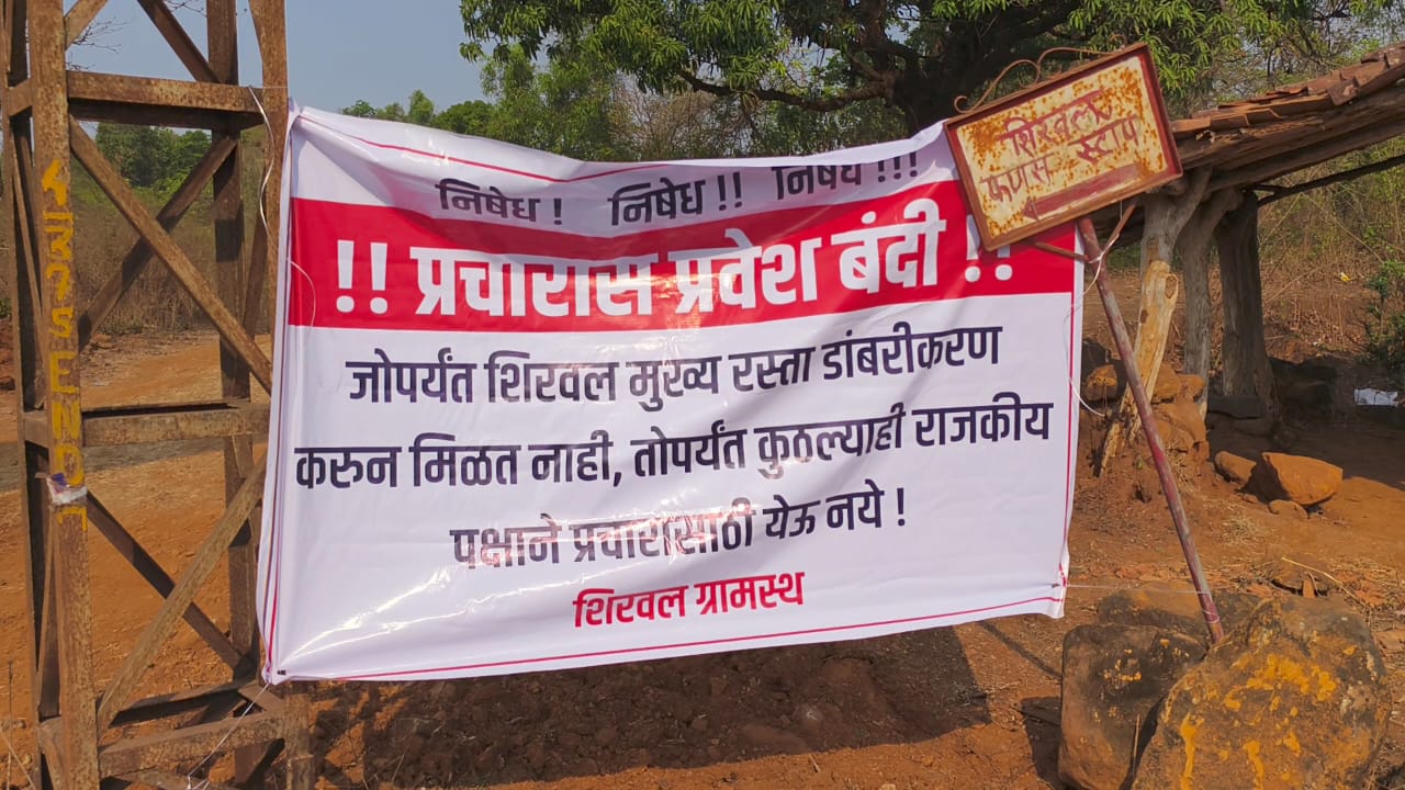 रस्त्याच्या डांबरीकरणाबाबत ग्रामस्थांनी लोकप्रतिनिधींना लक्ष वेधले होते. निवडणुकीपुरती खोटी आश्वासने देऊन तोंडाला पाने पुसण्या पलीकडे त्यांनी काहीही केले नाही, असा आरोप ग्रामस्थांनी अाहे. शिरवलमध्ये प्रचारासाठी येण्यास प्रवेशबंदी असा फलक लावण्यात अाला असून हा फलक लक्षवेधी ठरत आहे.