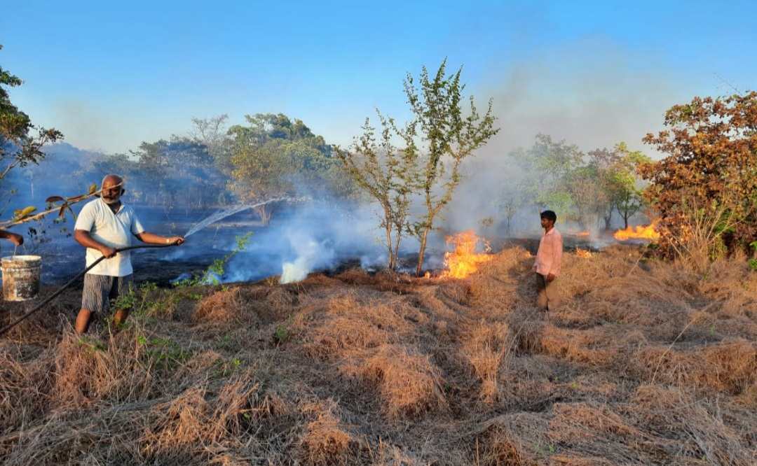 ⚡देवगड ता.०४-: वळीवंडे येथील कलम बागांमध्ये शनिवारी सकाळच्या सुमारास लागलेल्या आगीत मोठ्या प्रमाणात हापूस आंबा व काजू कलमे आहेत ही आग रस्त्याच्या दोन्ही बाजूला असलेल्या कलम बागायतीमध्ये पसरत आरे फाटा नजीकच्या भागांमधून तोरसोळे गावाच्या सीमेपर्यंत गेली होती. वातावरणातील उष्मा व वाऱ्यामुळे ही आग पसरत गेली. आग आटोक्यात आणण्यासाठी सायंकाळी उशिरापर्यंत स्थानिकांचे प्रयत्न सुरू होते आगेवर नियंत्रण मिळविण्यासाठी देवगड जामसंडे नगरपंचायतीच्या अग्निशामक बंबची मदतही देण्यात आली होती. या आगीत बागायतदारांचे सुमारे १५ लाखाहून अधिक नुकसान होण्याची भीती व्यक्त केली जात आहे.