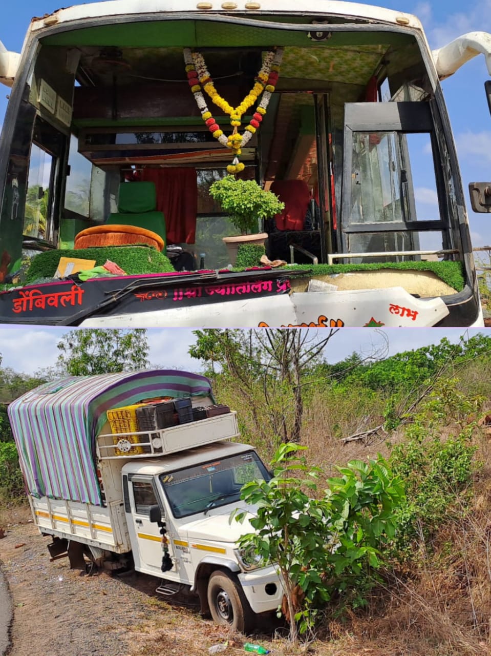 आराम बसच्या दर्शनी भागाचे मोठे नुकसान..