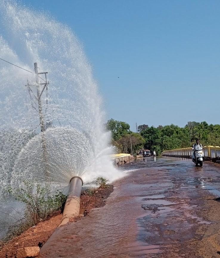 ⚡वेंगुर्ले ता.१०-: शिरोडा रेडी जोडणाऱ्या पुल जवळ आज दुपारी तिलारी पाणी योजनेची पाईप लाईन फुटल्याने हजारो लिटर पाणी वाया जात आहे.