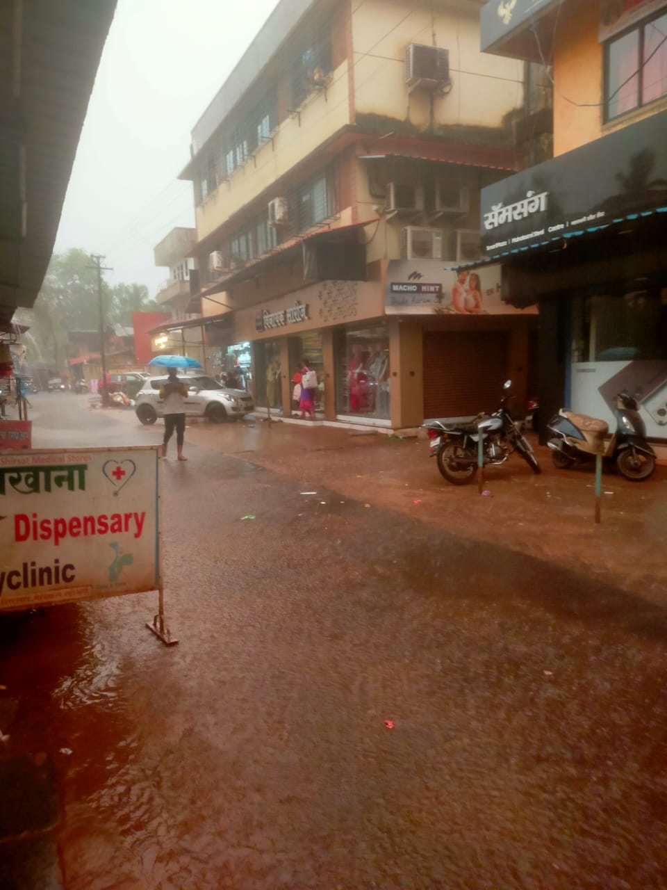 बांदा शहरातील कट्टा कॉर्नर येथे सखल भागात पावसाचे पाणी साठल्याने वाहनचालकांना वाहन चालविताना त्रास होत होता.