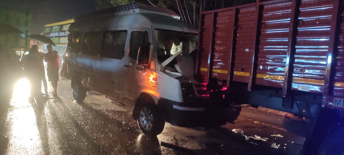 रत्नागिरी वरवडे येथील पिरणकर व आढाव परिवार देव दर्शनासाठी गोवा येथे एम एच 08 बीसी 5099 या टेम्पो ट्रॅव्हल्सने गेले होते. देव दर्शन आटोपून परत माघारी रत्नागिरी येथे परतत असताना बांदा स्मशानभूमी येथे महामार्गावर वाहतूक कोंडी असल्याने टेम्पो ट्रॅव्हल चालकाने गाडी थांबविली दरम्यान त्याच दरम्यान गोव्यातुन कुडाळच्या दिशेने जाणारा एमएच 07 एजे 5337 आला असता पाऊस असल्याने डंपर वरील चालकाचे नियंत्रण सुटले व डंपरने ट्रॅव्हल्सला धडक दिली ही धडक एवढी मोठी होती की ट्रॅव्हल्स समोर उभे असलेल्या आयशर टेम्पोला धडकली. दरम्यान डंपर चालकाने प्रसंगावधान राखुन डंपर दुभाजकावर घातल्याने ट्रॅव्हल्सची मोठी हानी झाली नाही मात्र मागच्या भागाचे व दर्शनी भागाचे नुकसान झाले.