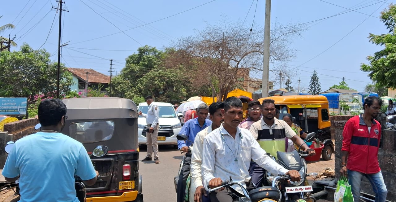 देवगड जामसंडे शहरातील वाहतूक कोंडीचा प्रश्न सध्या ऐरणीवर आला आहे. सध्या स्थितीत शहरात मुख्य बाजारपेठेच्या ठिकाणी रस्त्यावर मोठ्या प्रमाणात आंबे विक्री, तसेच मुख्य बाजारपेठेमध्ये खाजगी प्रवासी वाहतूक करणारी वाहने मुख्य बाजारपेठेत प्रवासी भरण्यासाठी उभी केल्यामुळे तसेच शहरात मोठ्या प्रमाणात पर्यटक देखील दाखल झाले आहेत.आणि त्यांच्याकडून वाहने रस्त्याच्या दुतर्फास बेशिस्तपणे लावत असल्यामुळे वाहतूक कोंडीचा सामना नागरिकांना करावा लागत आहे.एकूणच यामुळे वाहतुकी दरम्यान एखादे मोठे वाहन आल्यास वाहतूक कोंडी निर्माण होते यामुळे शहरात वाहतूक नियंत्रणात आणण्यासाठी अजून वाहतूक पोलिसांची गरज जाणवते आणखीन 15 ते 20 दिवस पर्यटकांची वर्दळ असणार आहे.असे येथील व्यापाऱ्यांचे म्हणणे आहे.त्यामुळे या ठिकाणी वाहतूक कोंडीचा सामना जाणवणार आहे. या कालावधीत मांजरेकर नका कॉलेज रोड तसेच जामसंडे बाजारपेठ येथे वाहतूक पोलीस तैनात केल्यास ही कोंडी नियंत्रणात आणण्यास मदत होऊ शकते असे त्यांचे म्हणणे आहे. यासंदर्भात नगरपंचायत प्रशासन व पोलीस प्रशासनाने तोडगा काढणे गरजेचे आहे.
