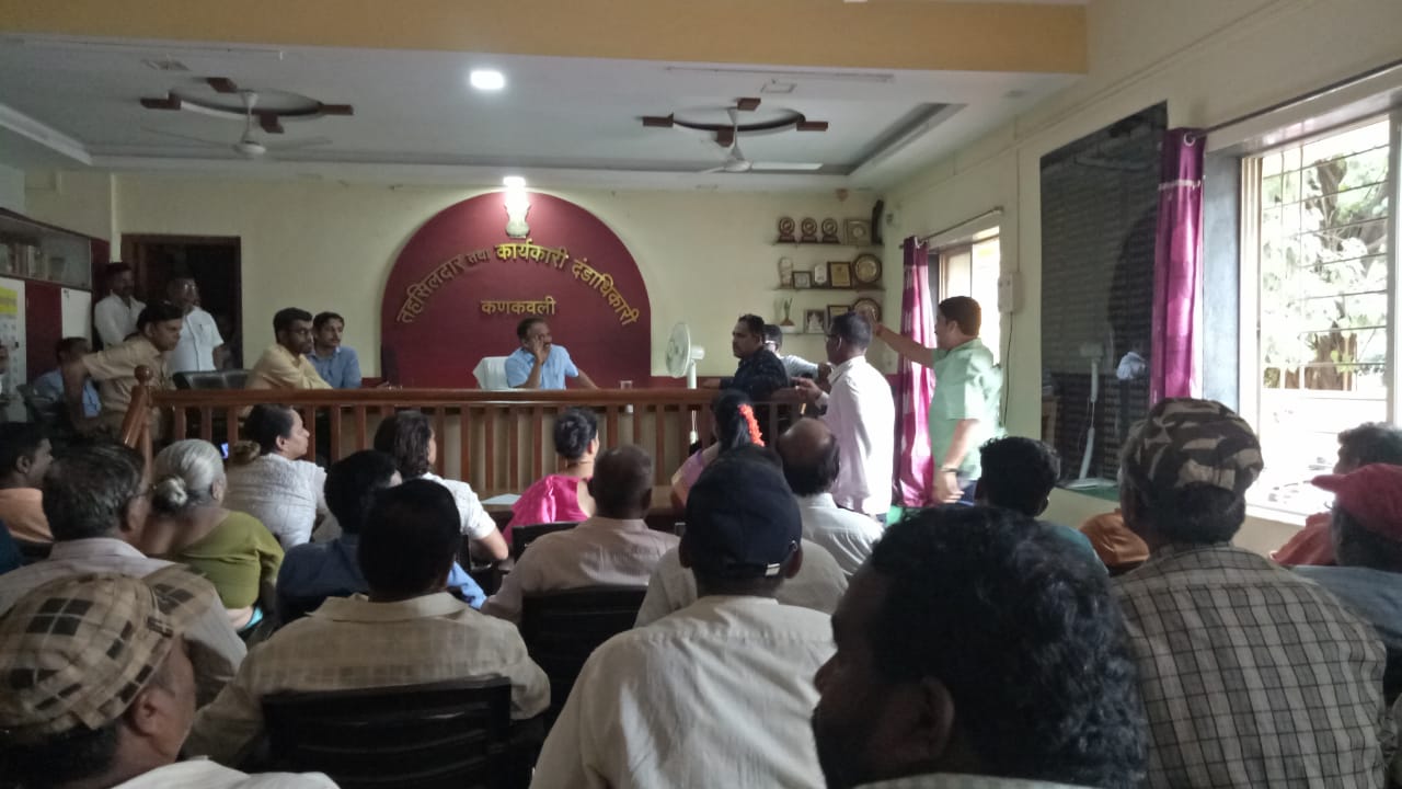 कणकवली : सावडाव धरणासाठी जमिन गेलेल्या शेतकऱ्यांचा समस्या व कैयफिती एेकूण घेण्यासाठी प्रांताधिकारी जगदीश कातकर यांच्या अध्यक्षतेखाली येथील तहलीदार कार्यालयातील तहसीलदारांच्या दालनात बैठक घेण्यात आली. यात शिवसेना उबाठा गटाचे पदाधिकारी सतीश सावंत व भाजपचे पदाधिकारी संदेश उर्फ गोट्या सावंत यांच्यात जोरदार शाब्दीक खंडाजंगी झाली. त्यामुळे काही वेळ वातावरण तंग झाले. सदरची बैठक प्रांताधिकारी यांनी रद्द केल्यामुळे निष्फळ ठरली.